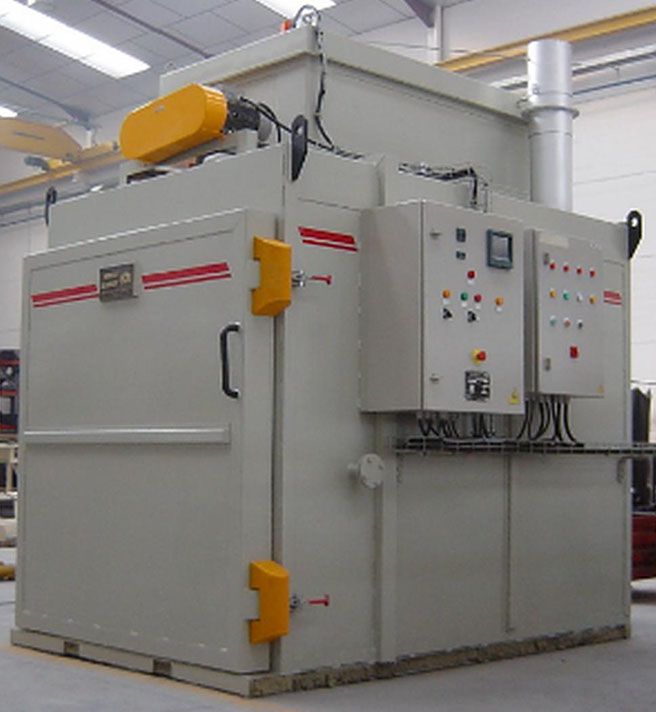 ESTUFA A GAS DE CONVECCIÓN CON CARRO DE CARGA PARA EL TRATAMIENTO DE PIEZAS INYECTADAS DE ALUMINIO sobre CESTONES.